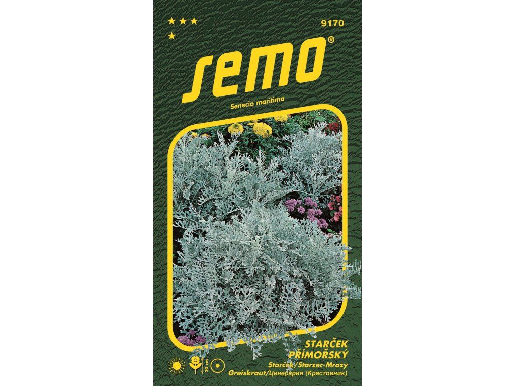Vytrvalý polokeř pěstovaný jako letnička. Přízemní růžice stříbřitě bílých, vykrajovaných listů vytvářejí zajímavý kontrast v pravidelných ornamentálních výsadbách (např. s modrými letničkami, šalvějí nebo odrůdami Begonia semperflorens). Malé úbory žlutých květů, rozkvétající v létě, je vhodné odstraňovat, dorůstá do výšky 20 cm.