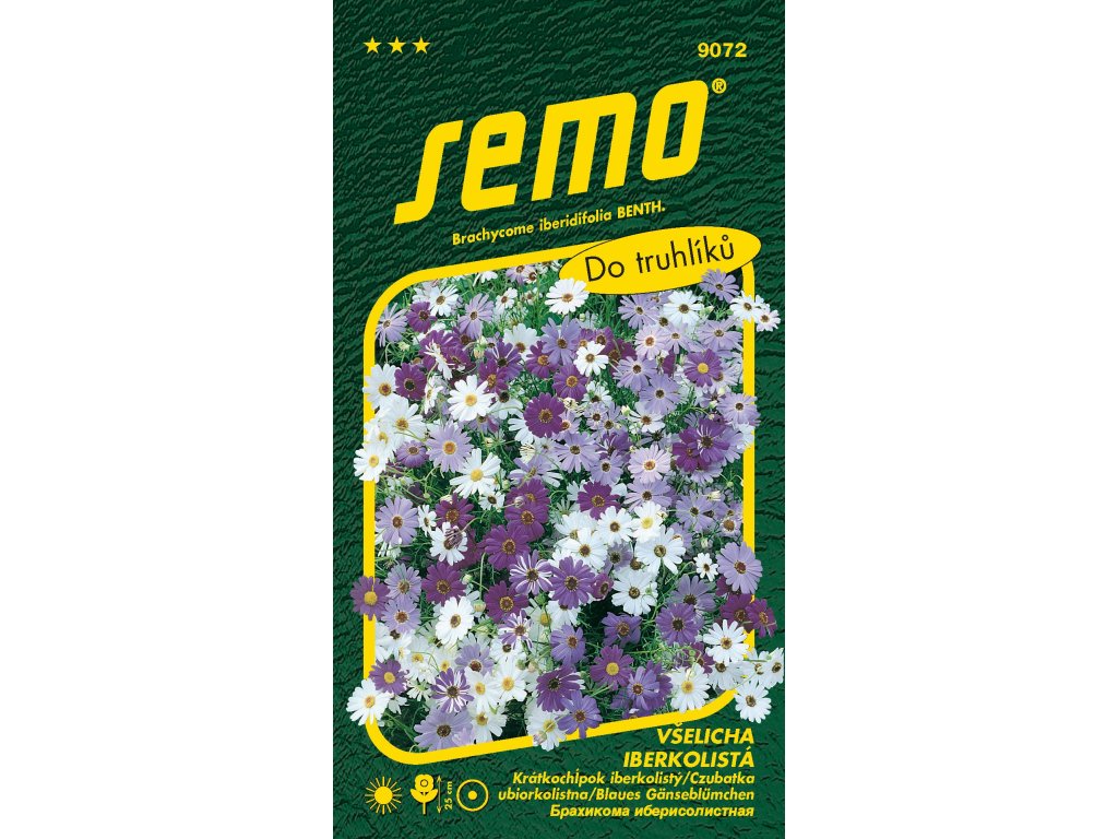 Rychle rostoucí, kompaktní, bohatě větvená letnička s drobnými, hluboce členěnými listy, původem z Austrálie. Po celé léto vytrvale kvete úbory modrých, růžových a bílých květů. Je vhodná do truhlíků, skalek a na okraje záhonů. Na zálivku je všelicha nenáročná, vyžaduje plné slunce a lehčí, dobře propustnou půdu. Dorůstá do výšky 25 cm.Doplňkové parametry